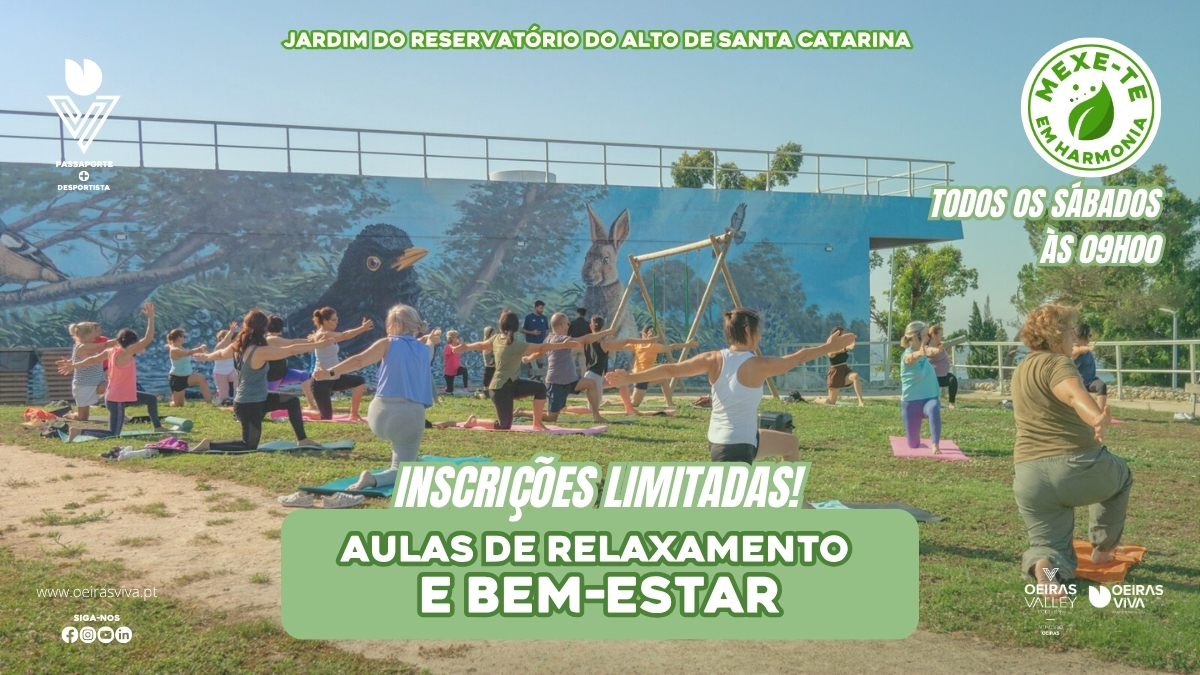 A 2ª Edição do programa de aulas de relaxamento e bem-estar no Jardim do Reservatório do Alto de Santa Catarina, todos os sábados de maio a setembro, às 09H00!